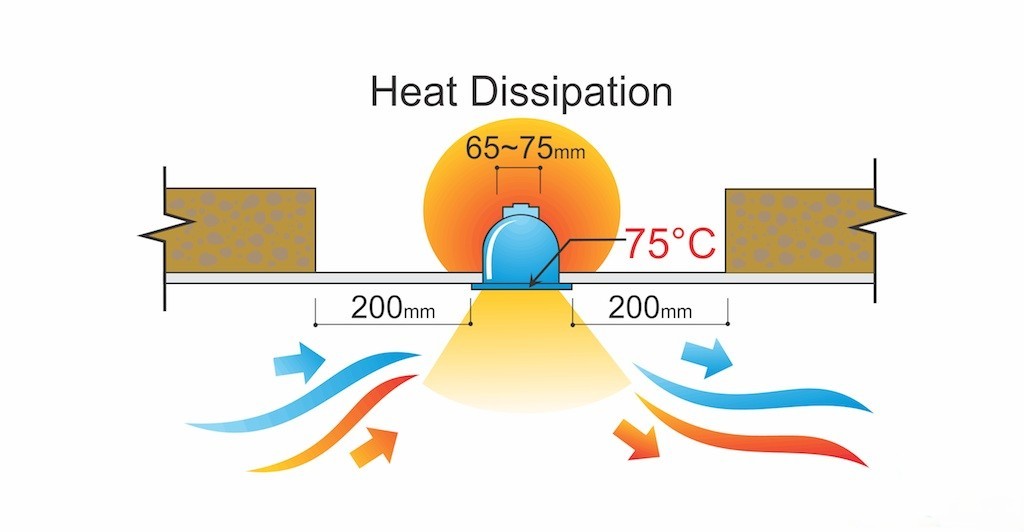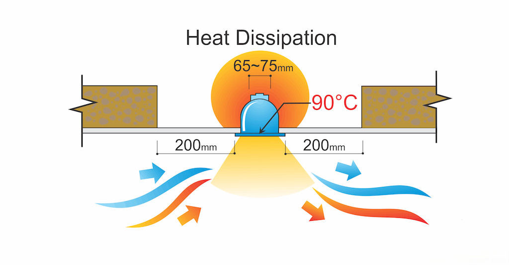 Halogen Globes reach extreme temperatures of 350˚C + and with a fixed head fitting can reach 90˚C without an enclosure. Fixed head fittings may benefit your home’s energy efficiency due to reduced air leakage rates compared to a gimble fitting, but they are uncoverable and thus require the 200mm insulation clearance stipulated in AS/NZS 60598.