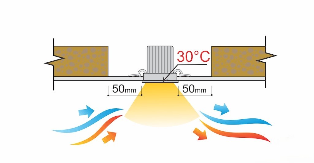 Because these fittings can be installed with 50W Halogen Globes, they must be tested with 50W Globes, even though the GU10 Fitting may be sold as an LED Fitting. Beware to check that these fittings are labelled with AS/NZS5110 before thinking about submerging them in insulation. (Again, GU10 LED’s need to be tested with GU10 50W Halogen; otherwise, they don’t comply with AS/NZS 5110).