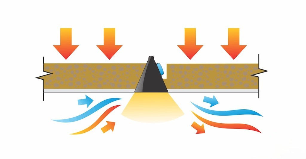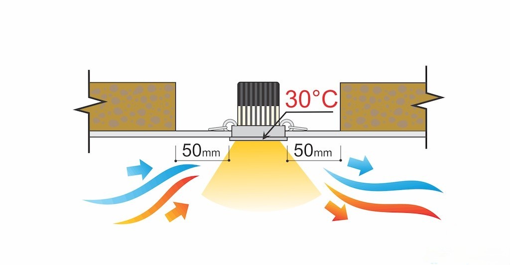 Loft area temperatures can get to temperatures of 70˚C. LED’s that are designed to be enclosed in a cover and ventilate with cooler living area air can benefit from an airtight barrier.